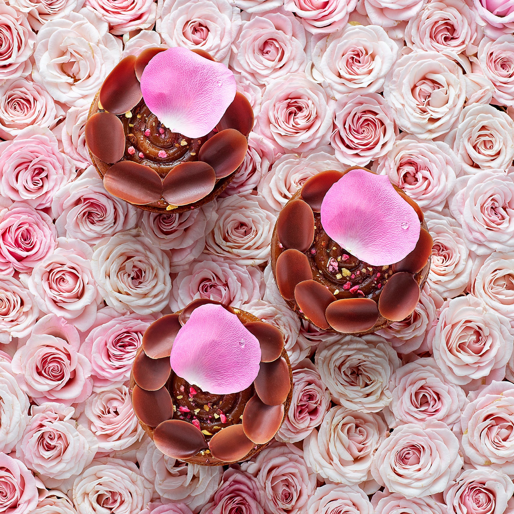 髙島屋のシンボルフラワーでもあるバラをテーマにした生ケーキ。バラの上品な香りに、ローストアーモンドの風味をまとったチョコレート、香ばしいアーモンドプラリネが見事に融合。まさに日本橋ならではの、華やかなオープン記念スイーツです。